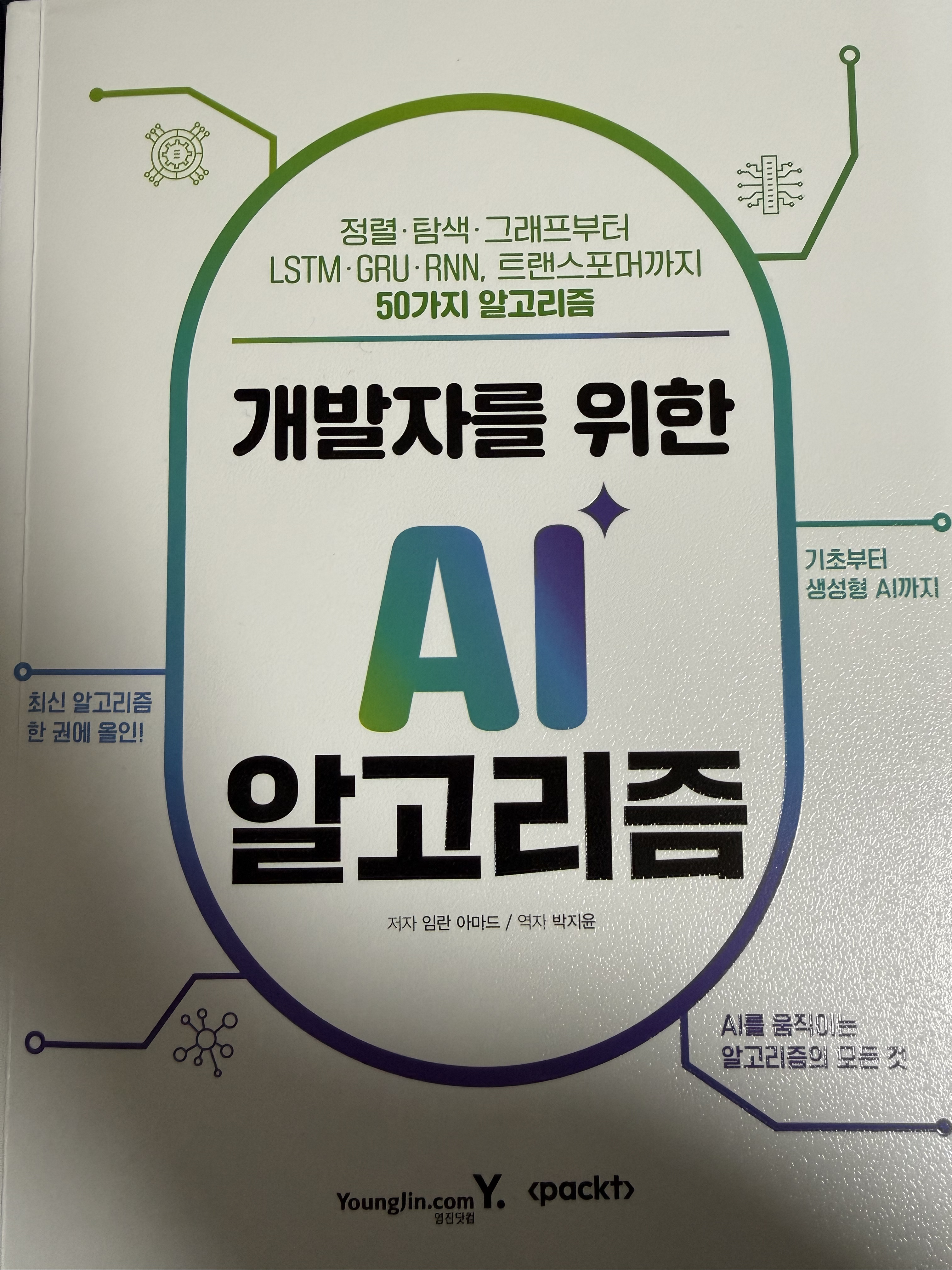 아직 다 읽지는 못했지만, 책에 대해서 리뷰하고자한다. 개발자를 위한 AI 알고리즘 “개발자를 위한 AI 알고리즘”은 AI 시대에 개발자가 반드시 갖춰야 할 알고리즘 사고력을 한 권에 정리한 실전 가이드로, 전통적인 알고리즘부터 최신 머신러닝·LLM까지 폭넓은 스펙트럼을 다룬다. ​ 책의 구성과 범위 이 책은 크게 3부로 나뉘며, 1부에서는 알고리즘 기초(빅오, 자료 구조, 정렬·탐색·그래프 등)를 다지고, 2부에서 머신러닝·딥러닝 알고리즘(분류, 회귀, 클러스터링, 신경망 등)을, 3부에서는 자연어 처리, 트랜스포머, LLM, 대규모 시스템 알고리즘까지 확장한다. 특히 LLM의 핵심인 어텐션, 트랜스포머, Seq2Seq 등을 알고리즘 관점에서 깊이 있게 설명해, 챗GPT 같은 생성형 AI가 어떻게 작동..