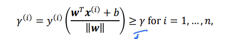 하지만, 2𝑥1 + 3𝑥2 + 1 = 0 and 4𝑥1 + 6𝑥2 + 2 = 0. 같은 선이라도, 위의 functional margin의 식을 대입하면, 값이 다르게 나온다는 함정이있다.
