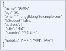 JSON, XML -> 구조화된 데이터를 표현하고 전송하기 위한 데이터 형식이다. 사용 목적과 상황에 따라 적당한 데이터를 사용하는 것이 좋다. -> 요즘 트랜드는 JSON을 많이 따라가고 있음. JSON 형식 -> Text를 구조화 한다. Json은 경량의 데이터 교환형식으로, 텍스트 기반의 구조화된 데이터를 표현한다. Json은 가독성이 좋고, 다양한 프로그래밍 언어와 호환이된다. 사용 방식: {}로 묶인 키- 값 쌍의 집합이다. 키와 값은 콜론 (:) 으로 구분되고, 키-값의 쌍은 ,로 구별한다. 배열은 [ "apple", "banana", "orange" ] -> []로 표현을 한다. XML-> HTML(마크업 렝기쥐) xml은 데이터를 저장하고 전송하기 위한 마크업 언어이다. XML은 트리 구조..